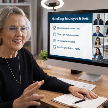 With over 40 years of hands-on experience in Human Resources, Jacquelyn has built a career spanning manufacturing, retail, education, and hospitality. Known throughout California for her ability to simplify complex employment laws, she delivers engaging HR certification prep and transforms workplace training into meaningful, memorable conversations. Over the years, she has taught thousands of HR professionals and managers to lead with knowledge, confidence, and heart. Jacquelyn walks with a cane but runs a collective — a business built to empower others and elevate the HR profession. Passionate, resilient, and inspiring, she continues to shape the future of learning and leadership.
