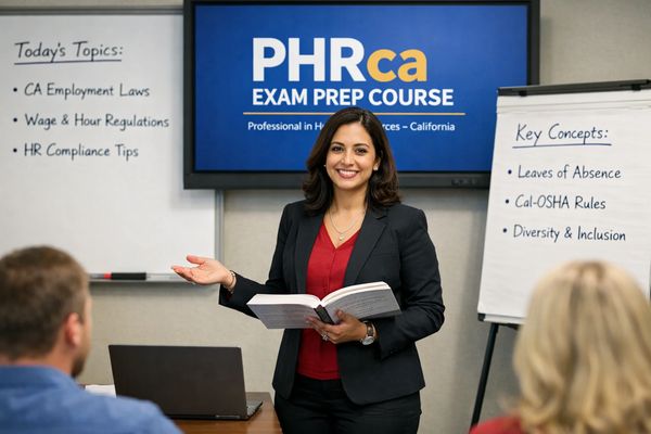 The PHRca Exam Preparation Train-the-Trainer Program approves qualified HR professionals to deliver California-specific exam prep using HR Coach LLC’s proven curriculum.
